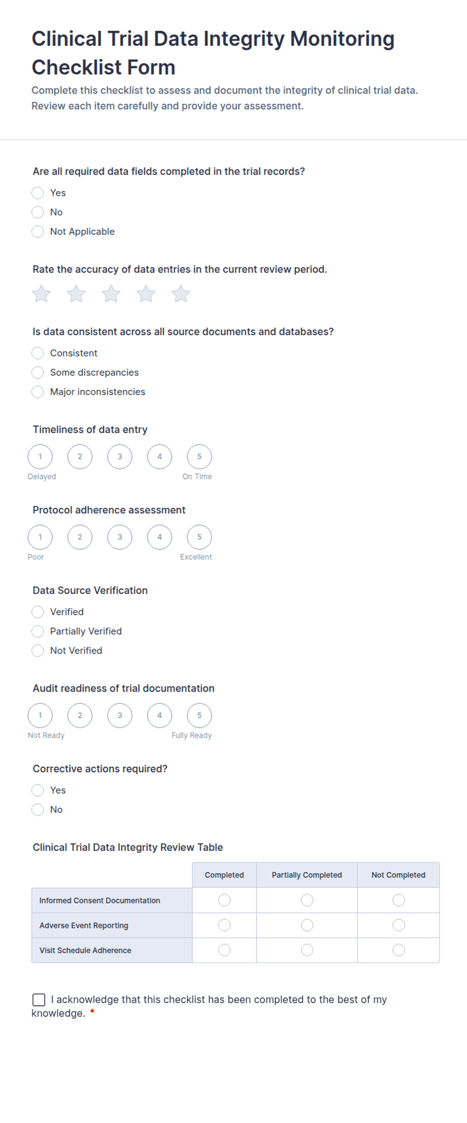 Clinical Trial Data Integrity Monitoring Checklist Form Template | Jotform