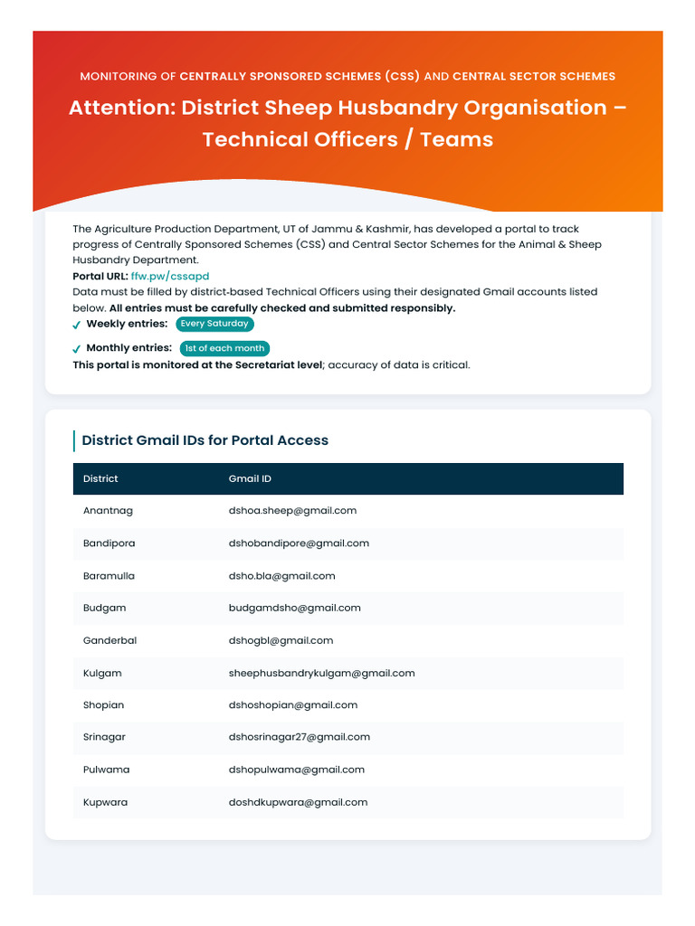 CSS Monitoring - Sheep Husbandry Department Kashmir | PDF