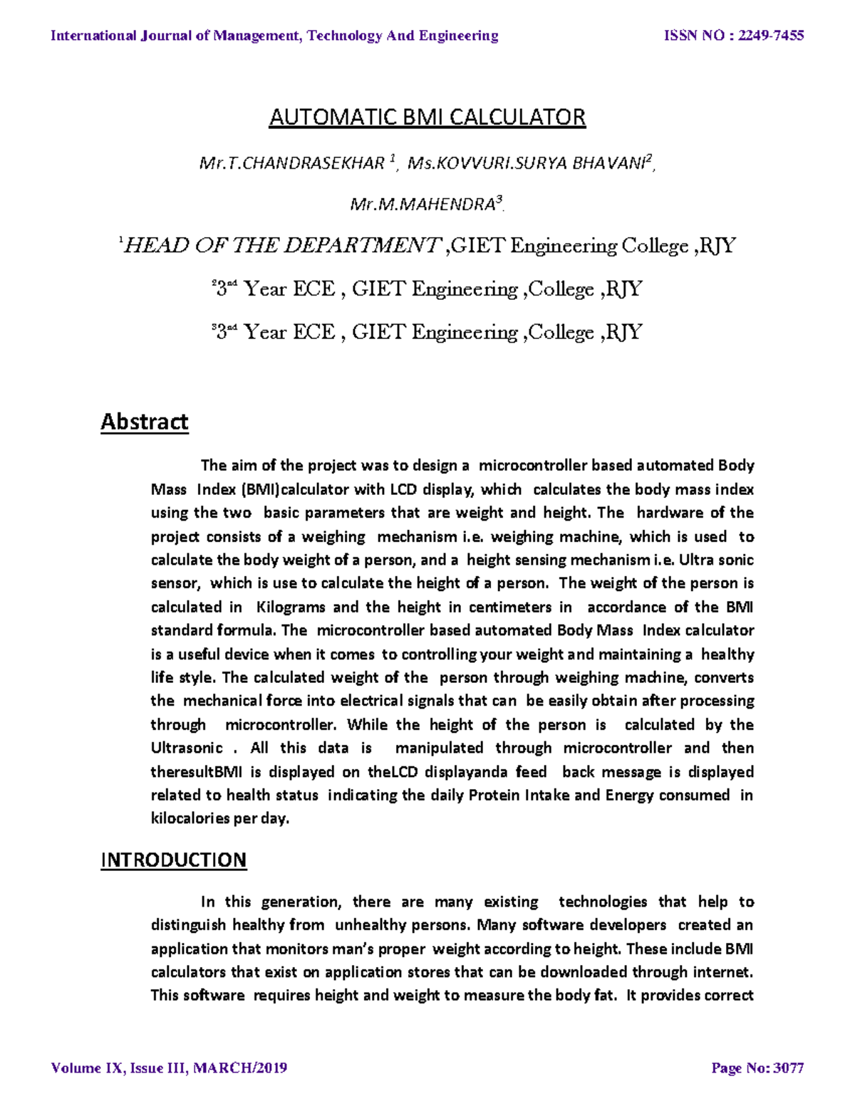 Automated BMI Calculator Design for Health Monitoring System (ENG 101 ...