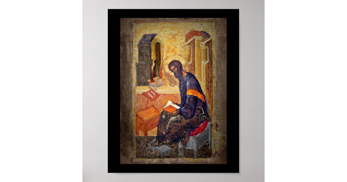 Premium AI Image | A painting of a monk writing with a pen in his hand.