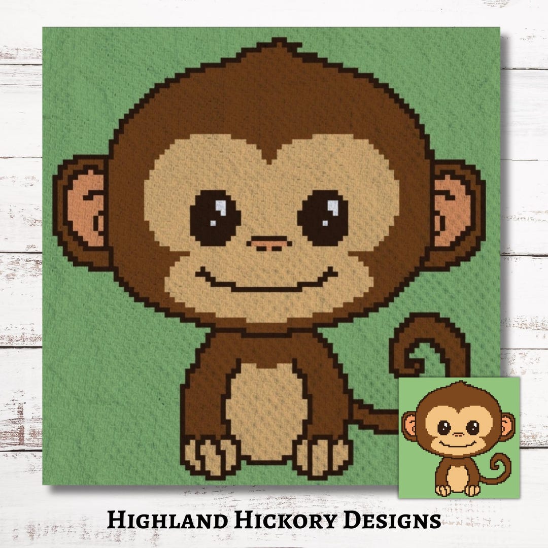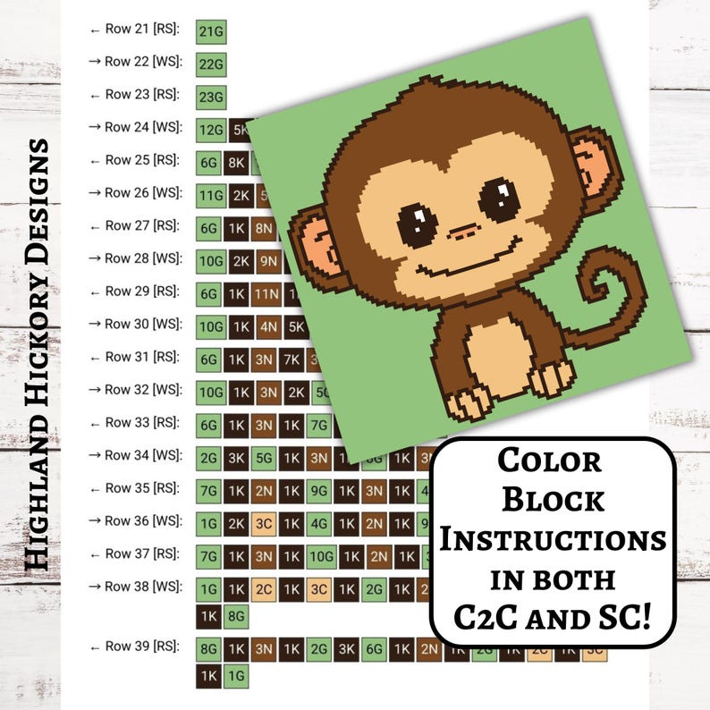 Baby Monkey Graph Crochet Pattern C2C Graphgan + Written Instructions ...