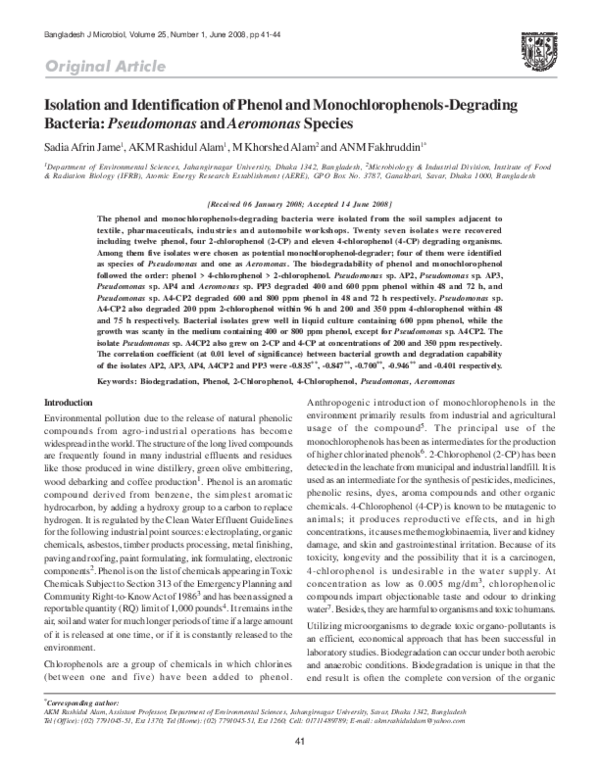 (PDF) Isolation and Identification of Phenol and Monochlorophenols ...