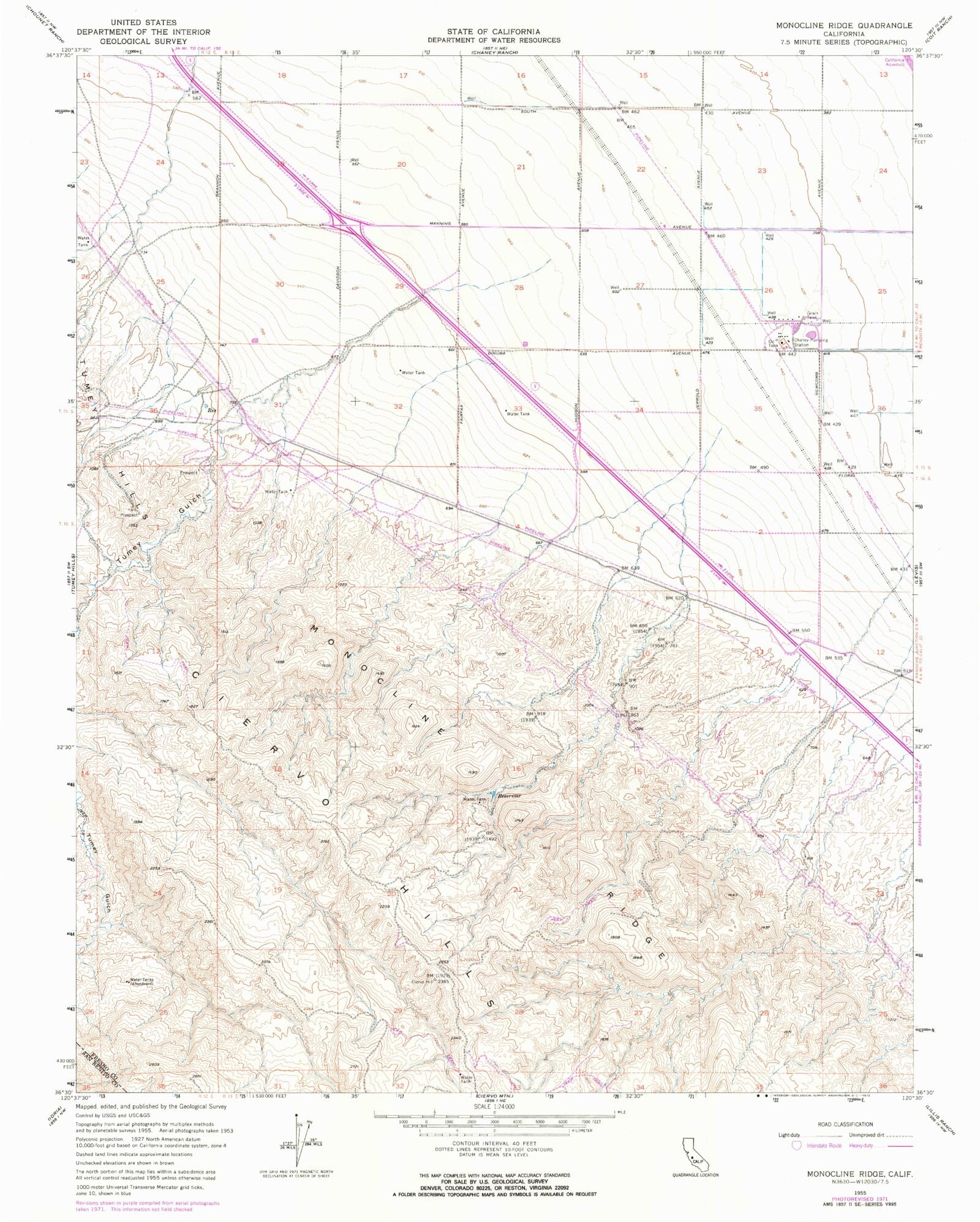 Classic USGS Monocline Ridge California 7.5'x7.5' Topo Map – MyTopo Map ...