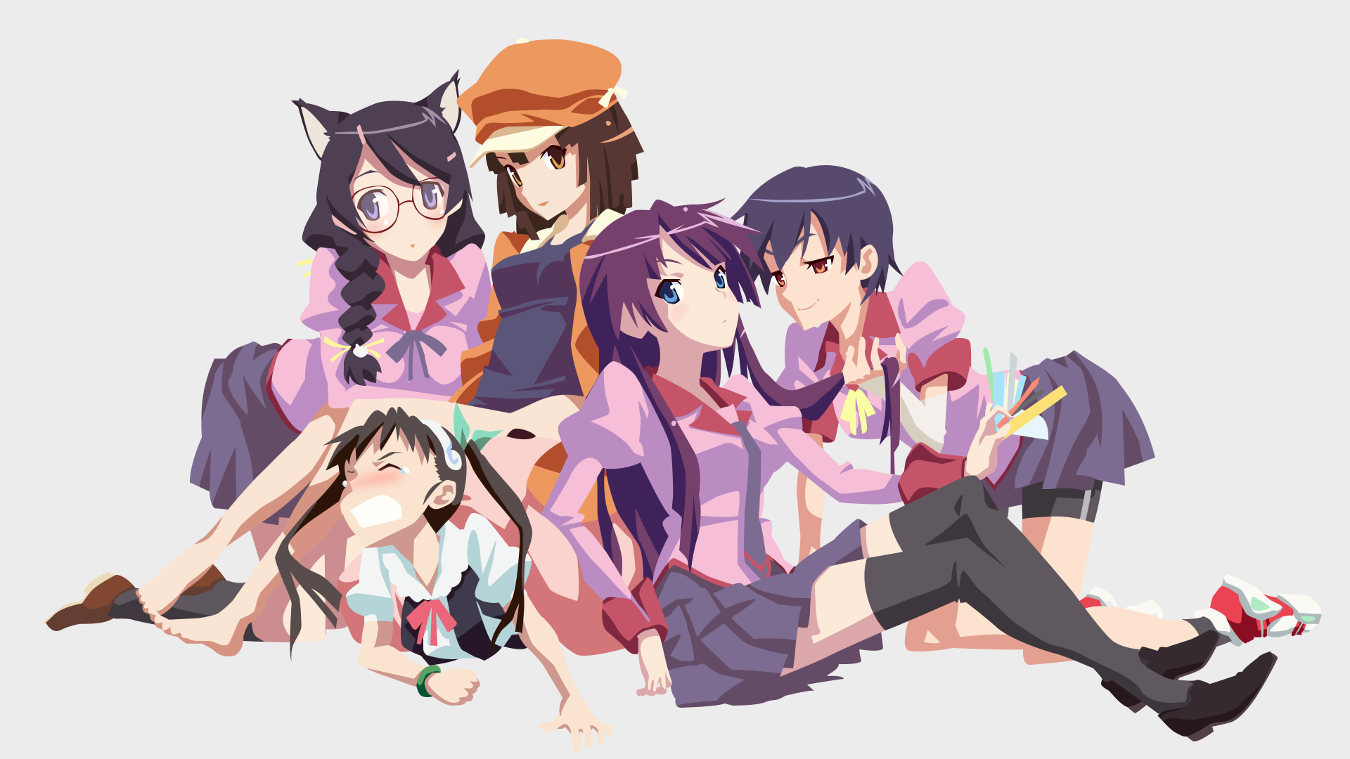 Monogatari Legends: Hitagi & Friends HD Anime Wallpaper