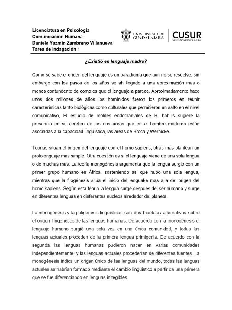 Bases de la Monogénesis Lingüística | PDF | Lingüística | Interacciones ...