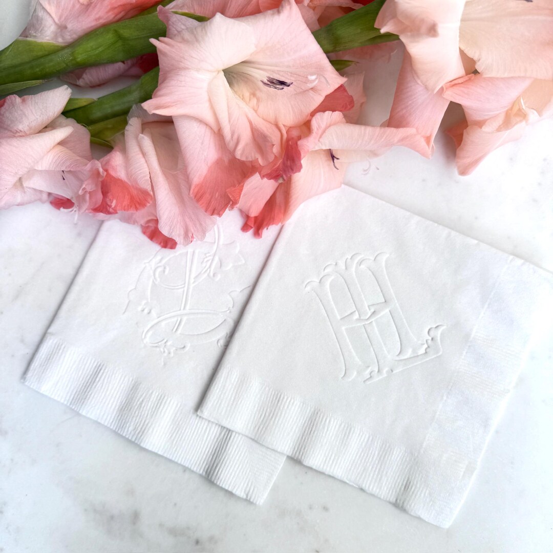 Elegant Embossed Monogram Cocktail Napkins, Embossed Monogrammed ...