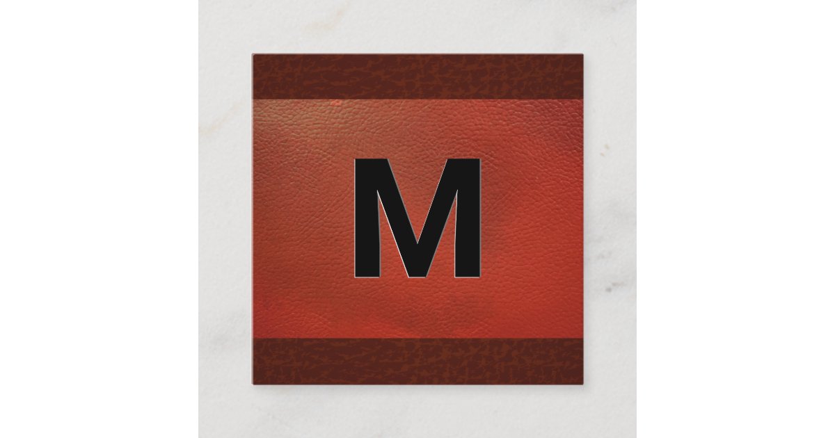 Monogram | Emboss Lettering Red Leather Square Business Card | Zazzle