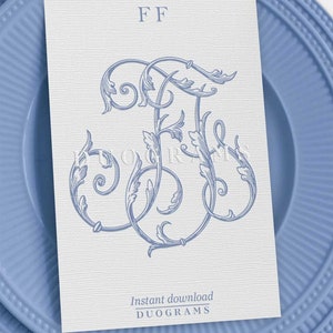 FF Vintage Wedding Monogram Logo Design 2-letter Monogram F F Digital ...