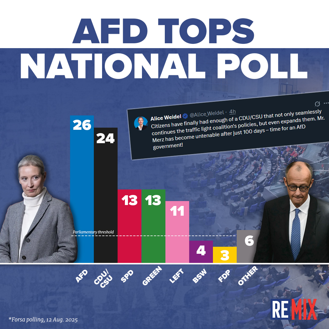 Far-Right AfD Tops German Polls at 26%, Surpasses CDU/CSU at 24% as ...
