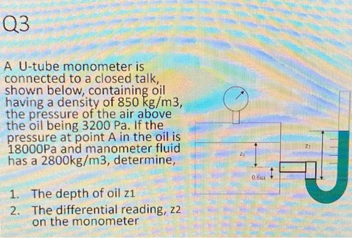 Solved Question 1: The figure below shows a U-tube monometer | Chegg.com