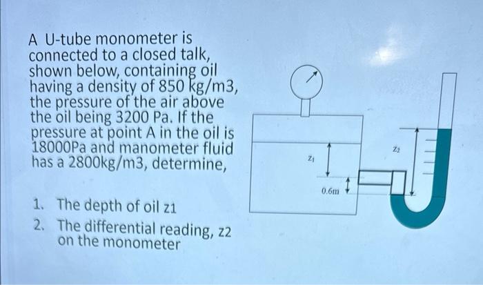 Solved A U-tube monometer is connected to a closed talk, | Chegg.com