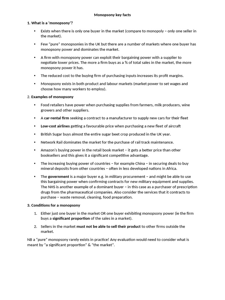 Understanding Monopsony: Key Facts and Examples | PDF | Market ...