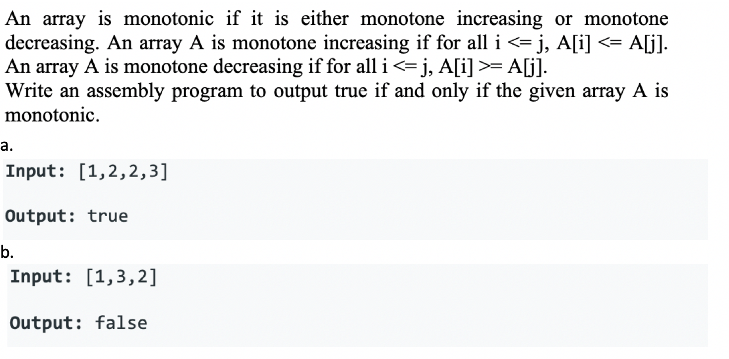Solved An array is monotonic if it is either monotone | Chegg.com