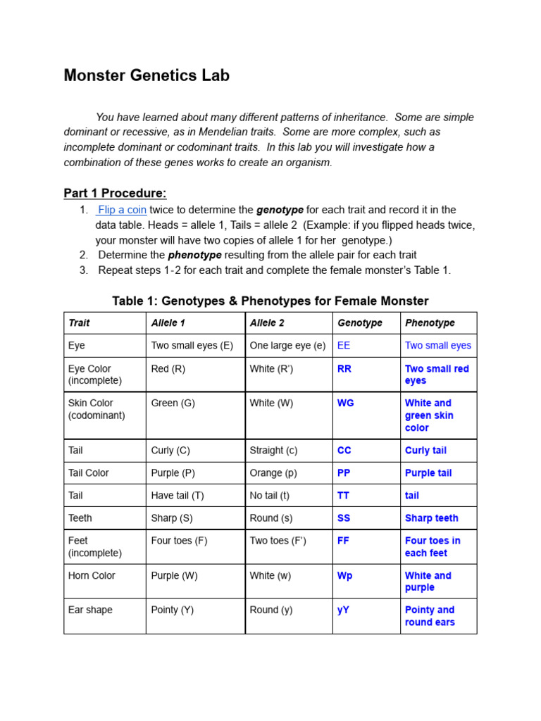 Monster Genetics Lab | PDF | Phenotypic Trait | Dominance (Genetics ...