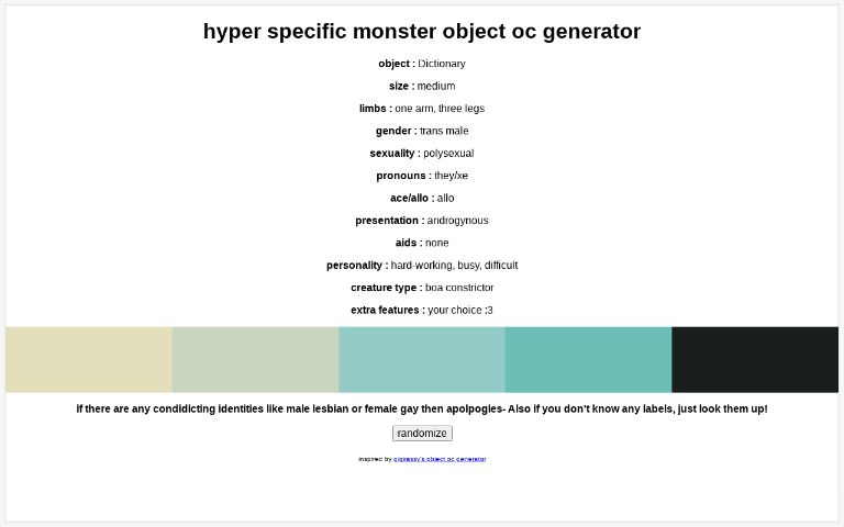 hyper specific monster object oc generator