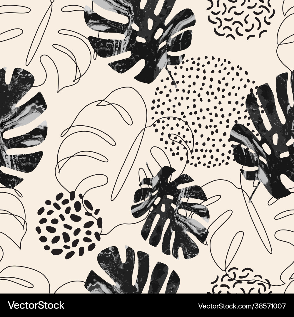 Monstera Marble Line Art Pattern Royalty Free Vector Image
