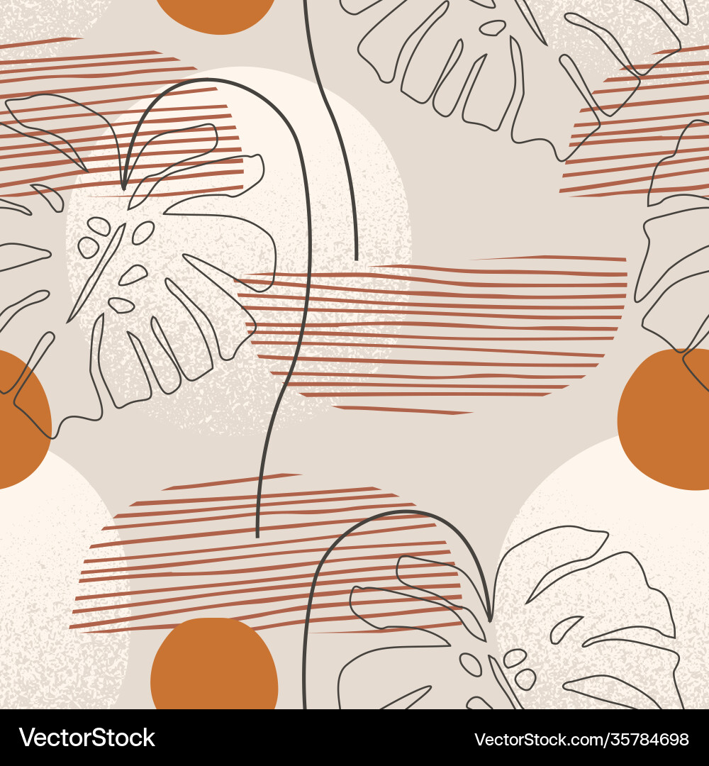 Monstera Line Art Abstract Pattern Stock Vector (Royalty Free ...
