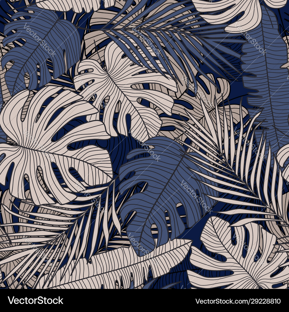 Monstera Leaves Seamless Pattern Tropical Pattern Botanical Leaf, Lines ...