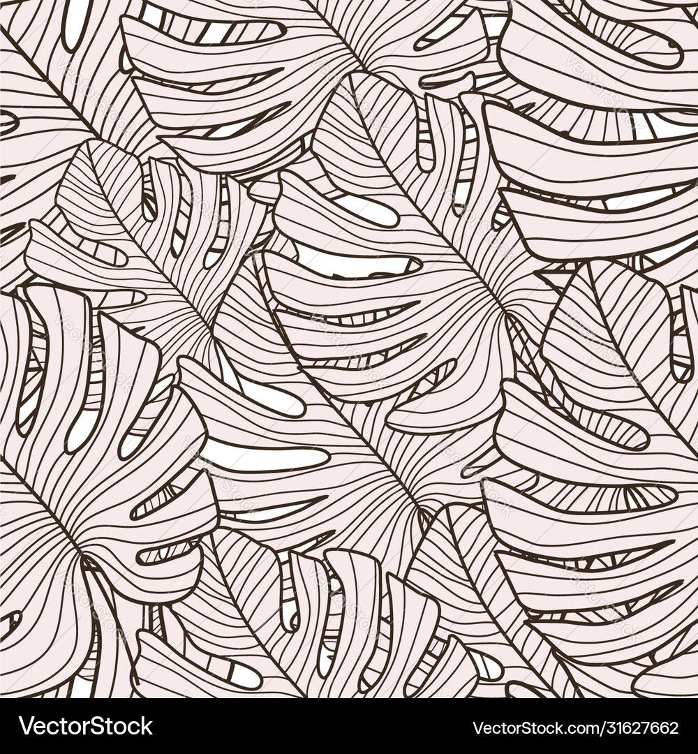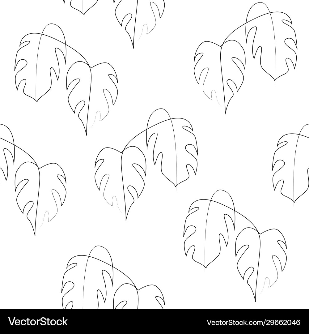 Seamless Pattern Of The Branches Of Monstera Line Drawing Vector ...