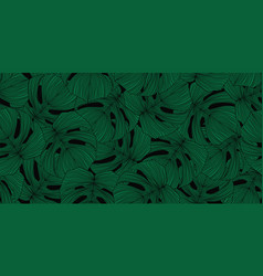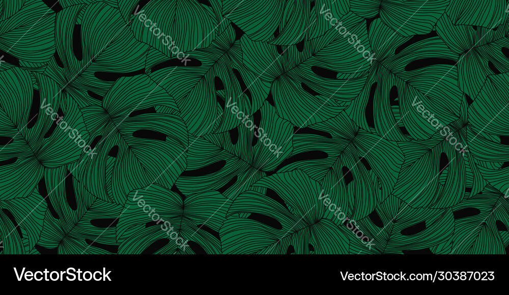 Green Monstera Line Leaves Seamless Pattern Background, Vector ...