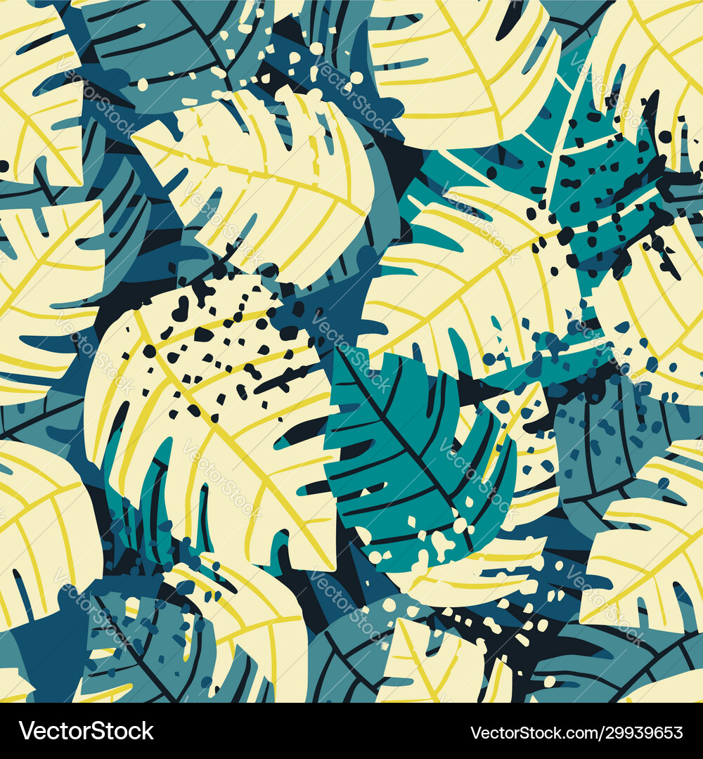 Monstera pattern by hand drawing.Monstera vector seamless on vintage ...