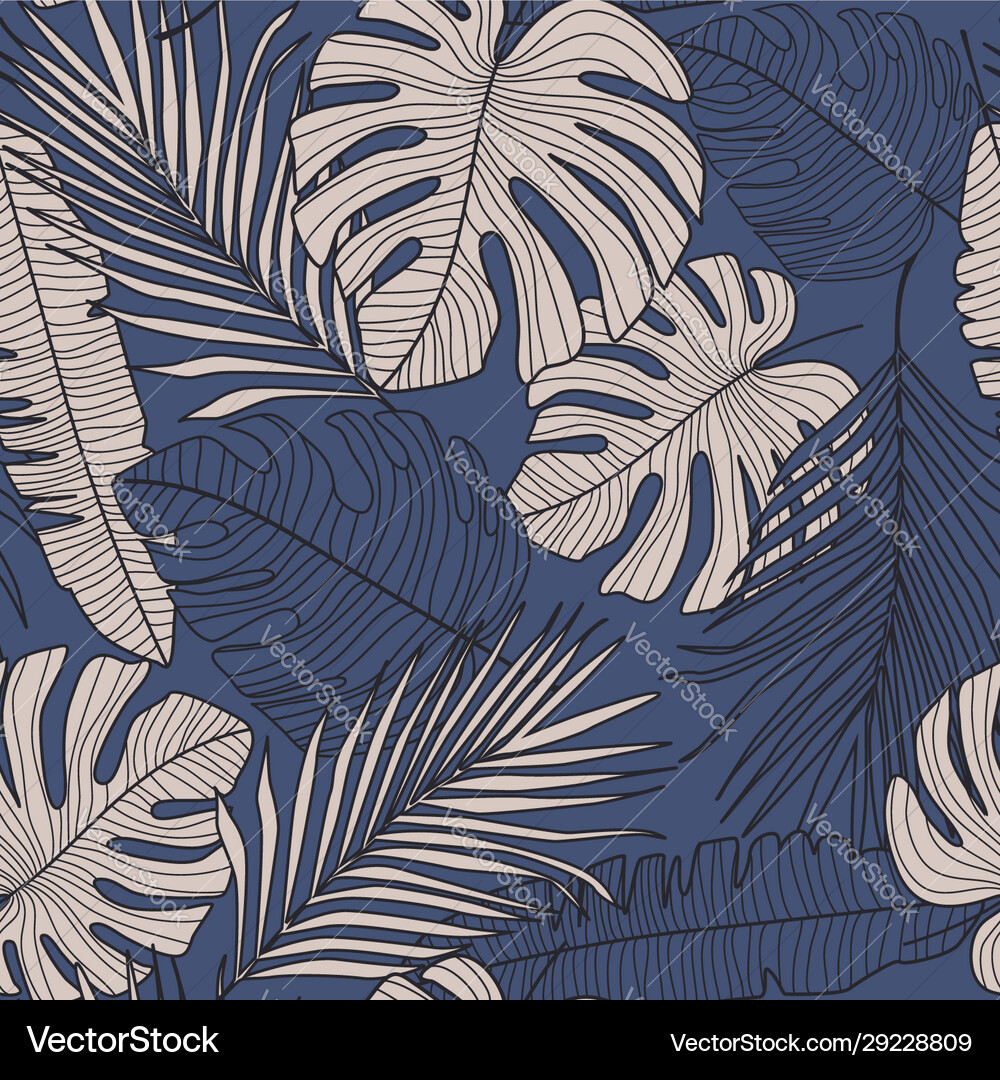 Line art pattern with banana and monstera leaves. Perfect for tropical ...