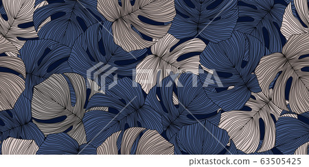 Monstera line leaves seamless pattern. Modern - Stock Illustration ...