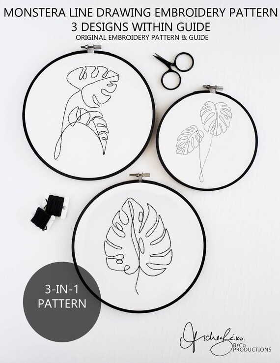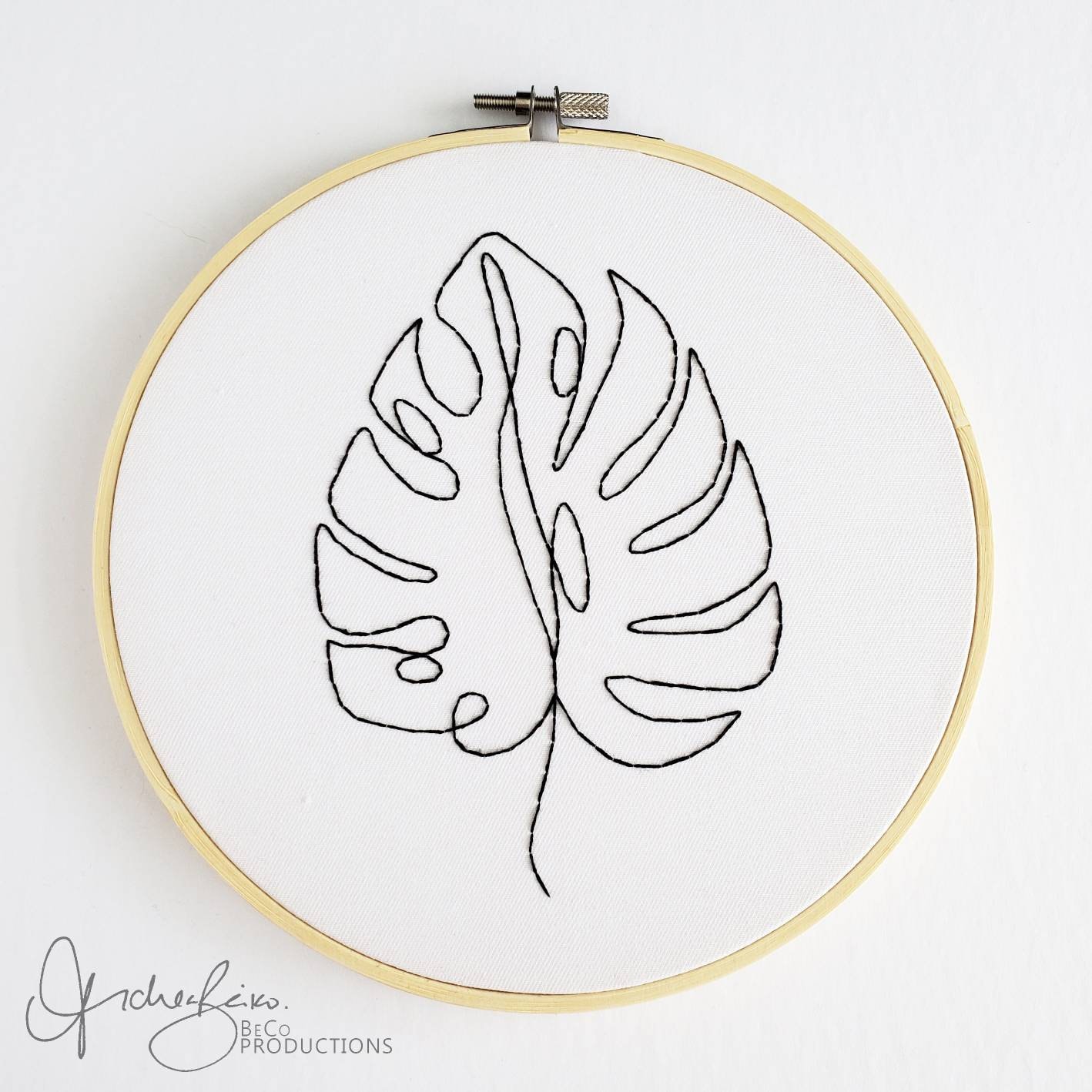 Monstera Leaf 3-in-1 Line Drawing Embroidery Pattern & Guide | Etsy