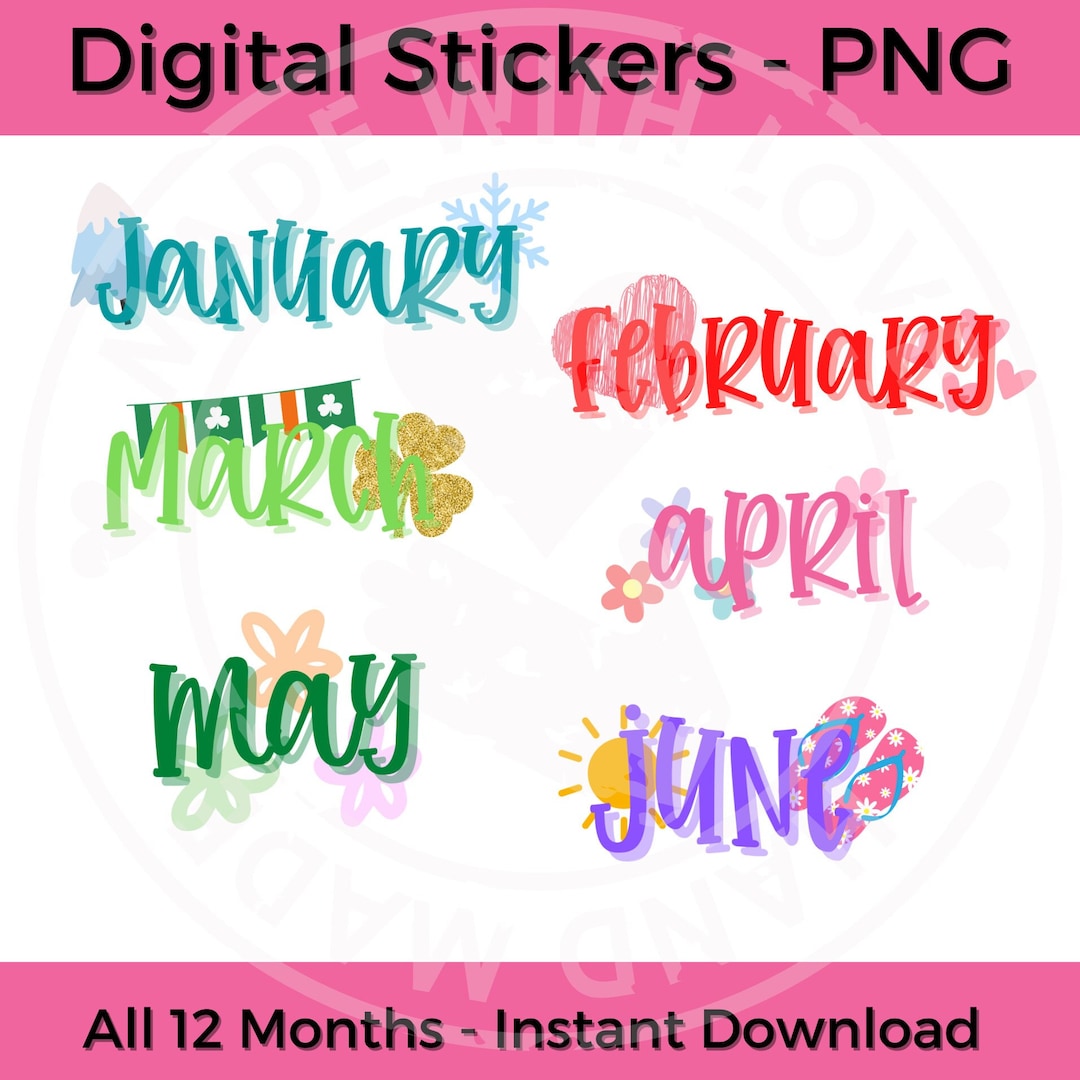 Months of the Year Sticker Bundle | Digital & Print Sticker Set - So Fontsy