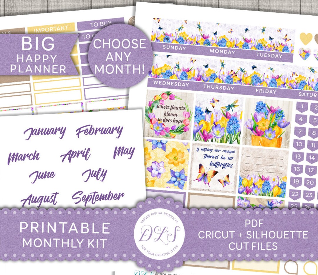 Printable FLORAL Monthly Stickers Kit, Big Happy Planner Monthly ...
