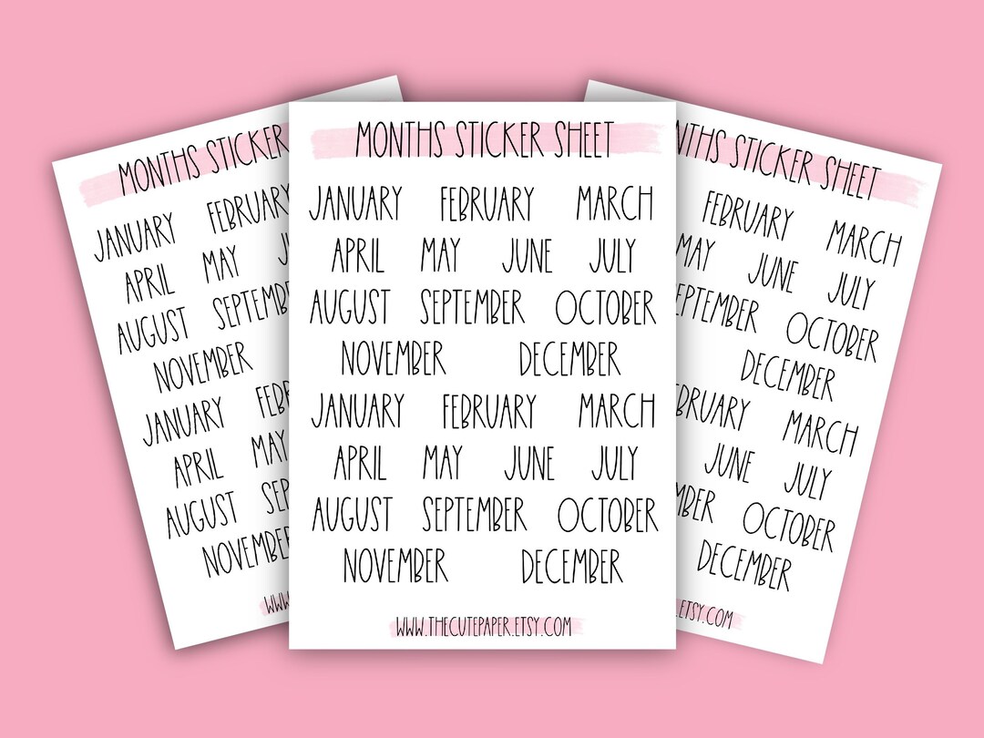 Months of the Year Sticker Sheet | Journal Sticker | Planner Sticker ...