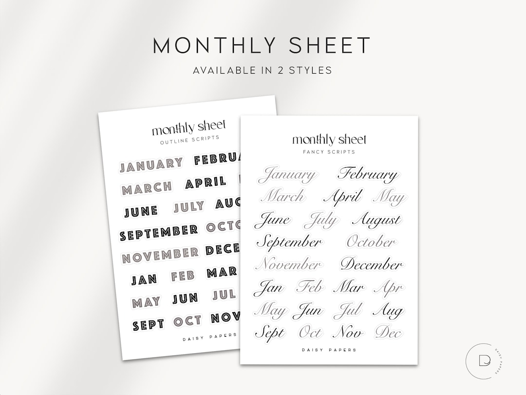 MONTHLY SHEET - January to December Monthly Stickers for Jouranling ...