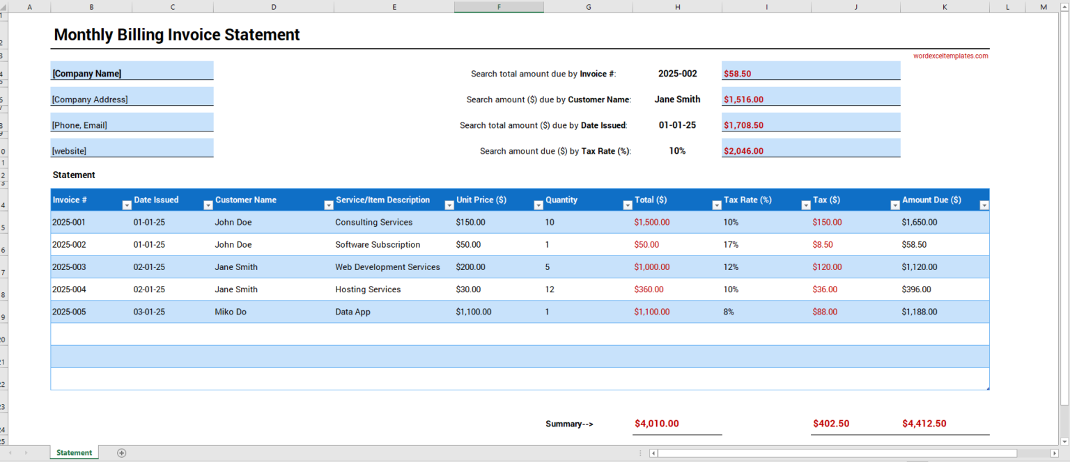 Free Monthly Invoice Excel Template: Easy-to-Use Download for Efficient ...