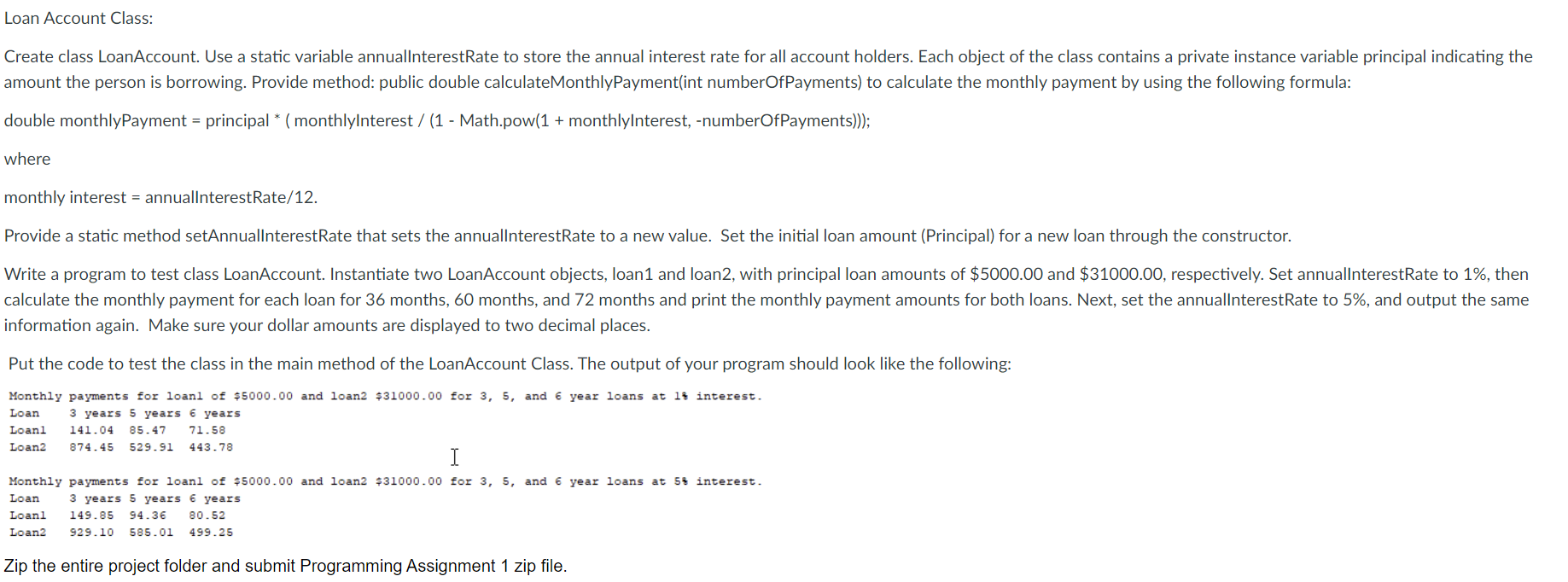 Solved Write a Java class to calculate the monthly payments | Chegg.com