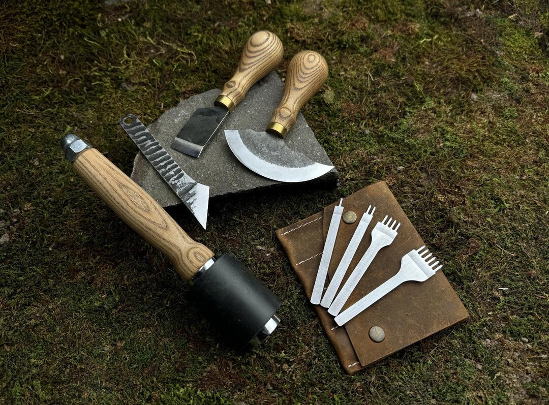 Leather Craft Tool Set – Half Moon Knife, Beveler & Stitching Chisels ...