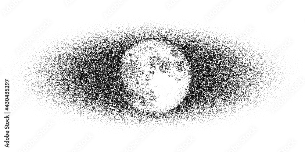 Dotwork Moon night pattern vector background. Sand grain effect. Black ...