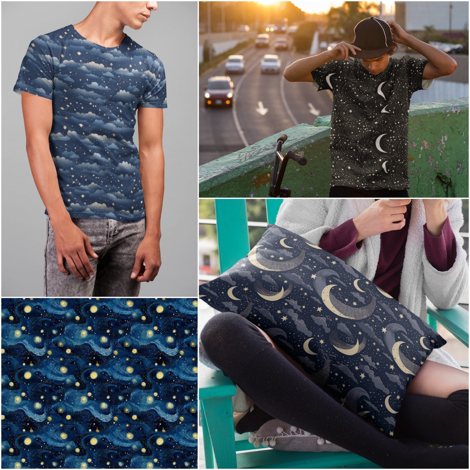 25 Moon Patterns Lunar Seamless Patterns Night Sky Repeatable Star ...
