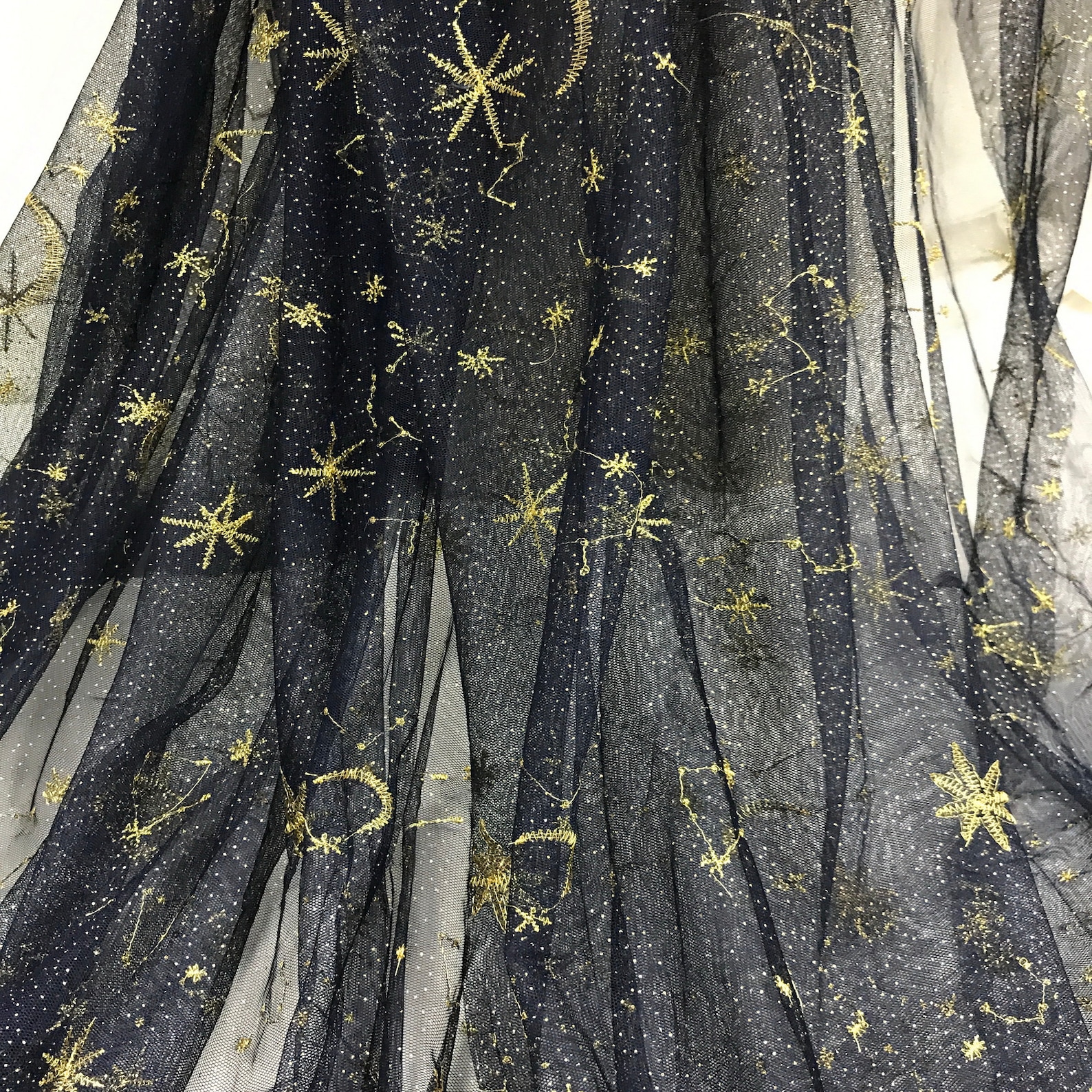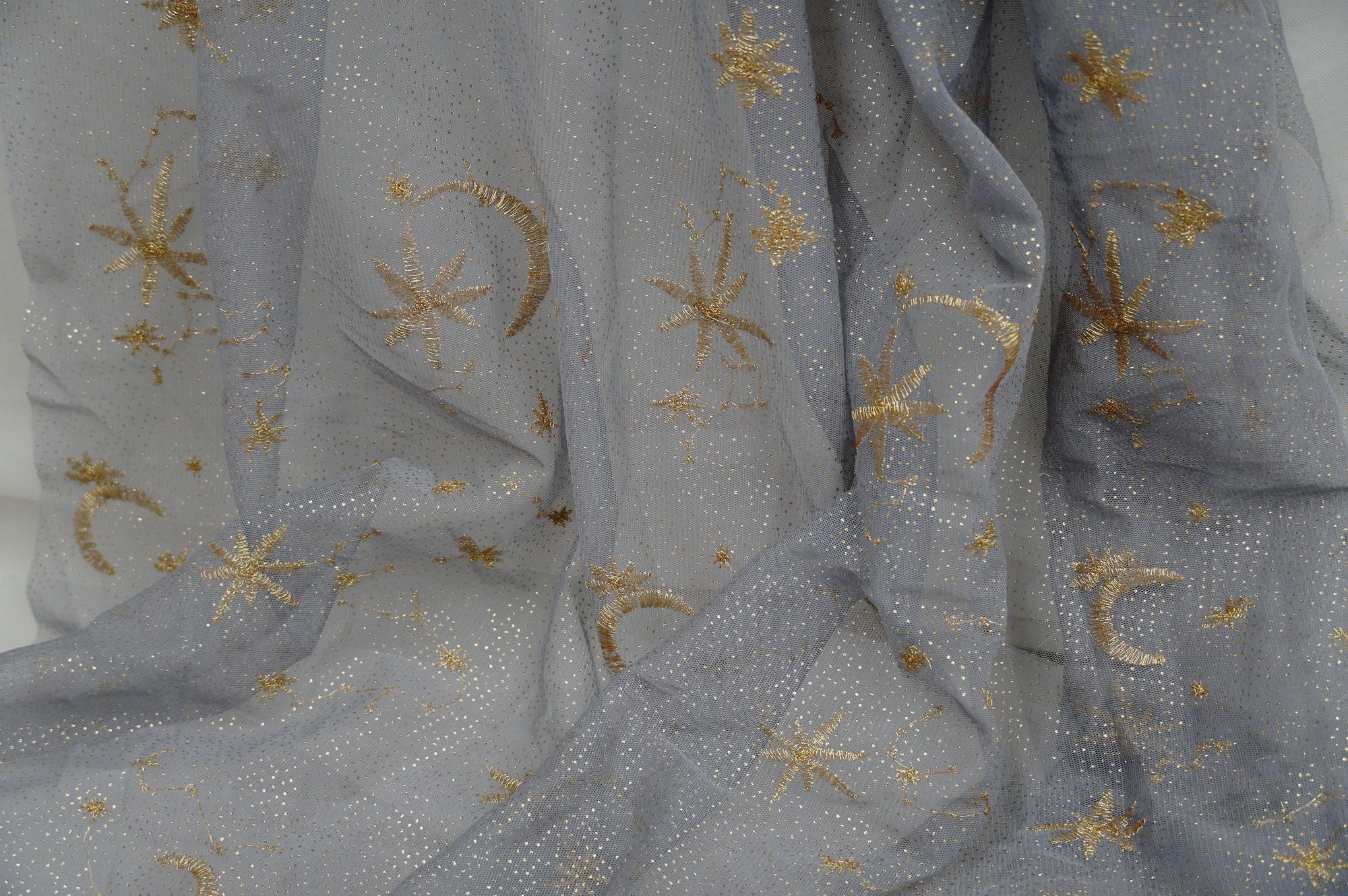Gold Moon Stars Pattern Mesh Netting Fabric, Navy / Gray Mesh Fabric ...