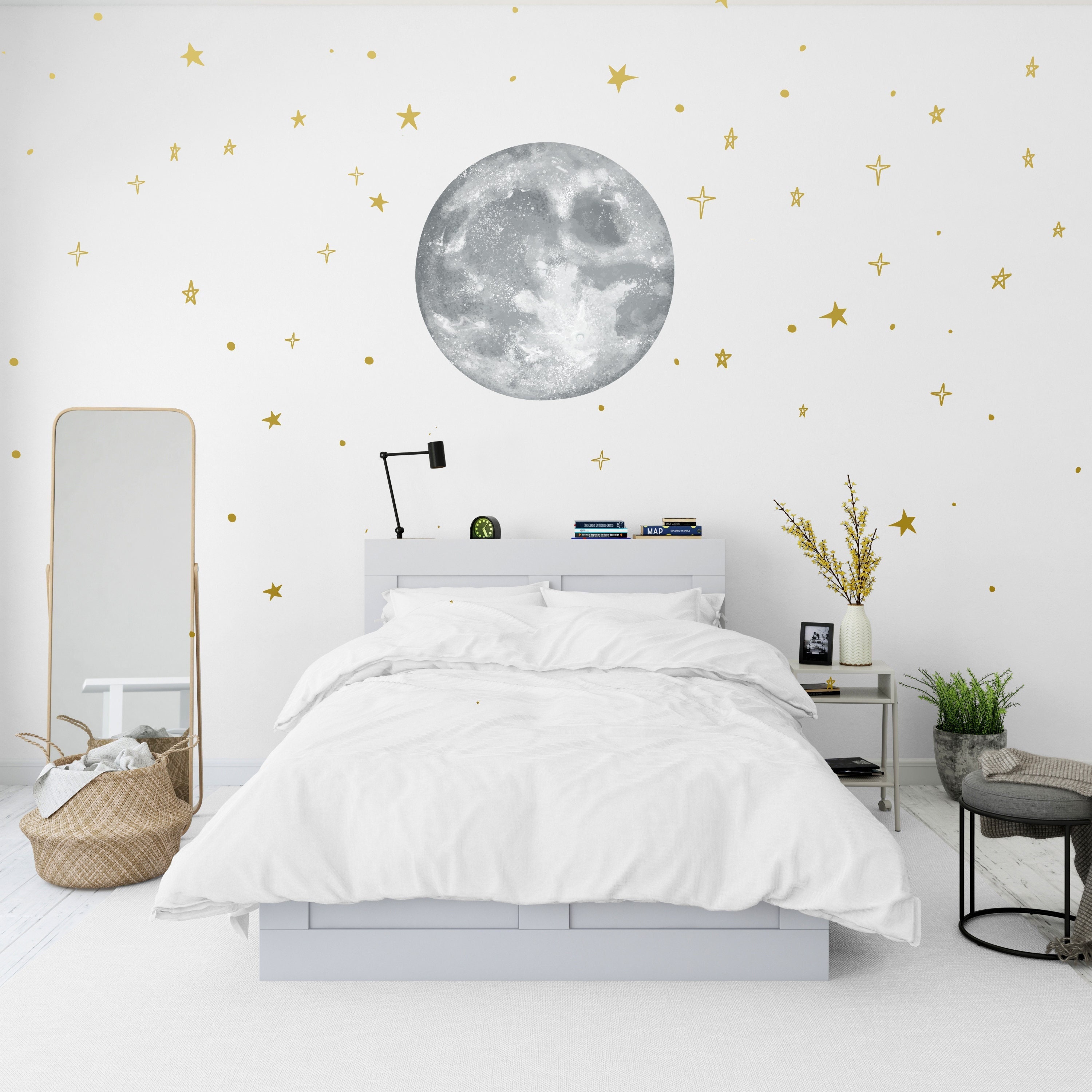 Full Moon Wall Sticker Moon Wall Decal Gold Stars Sticker - Etsy
