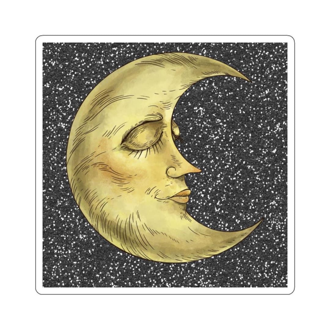 Vintage Crescent Moon Face Vinyl Sticker - Celestial Moon Decal for ...