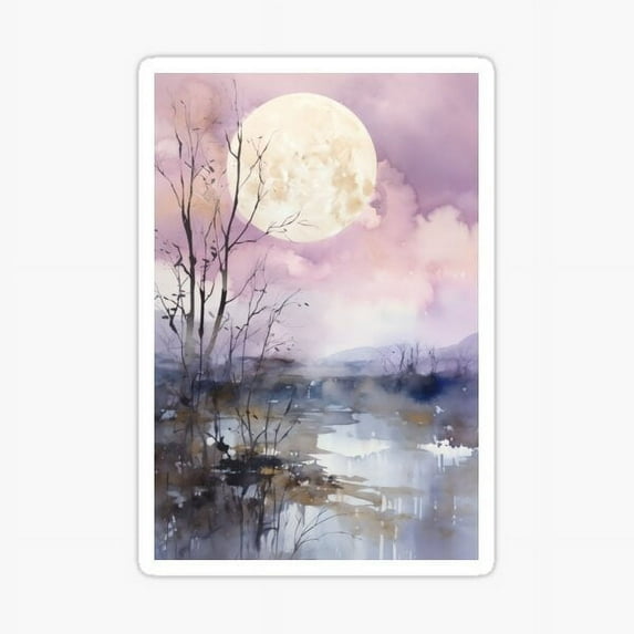 DOPASTICKER Lunar Reflections: Watercolor Moon Over Tranquil Lake, Calm ...
