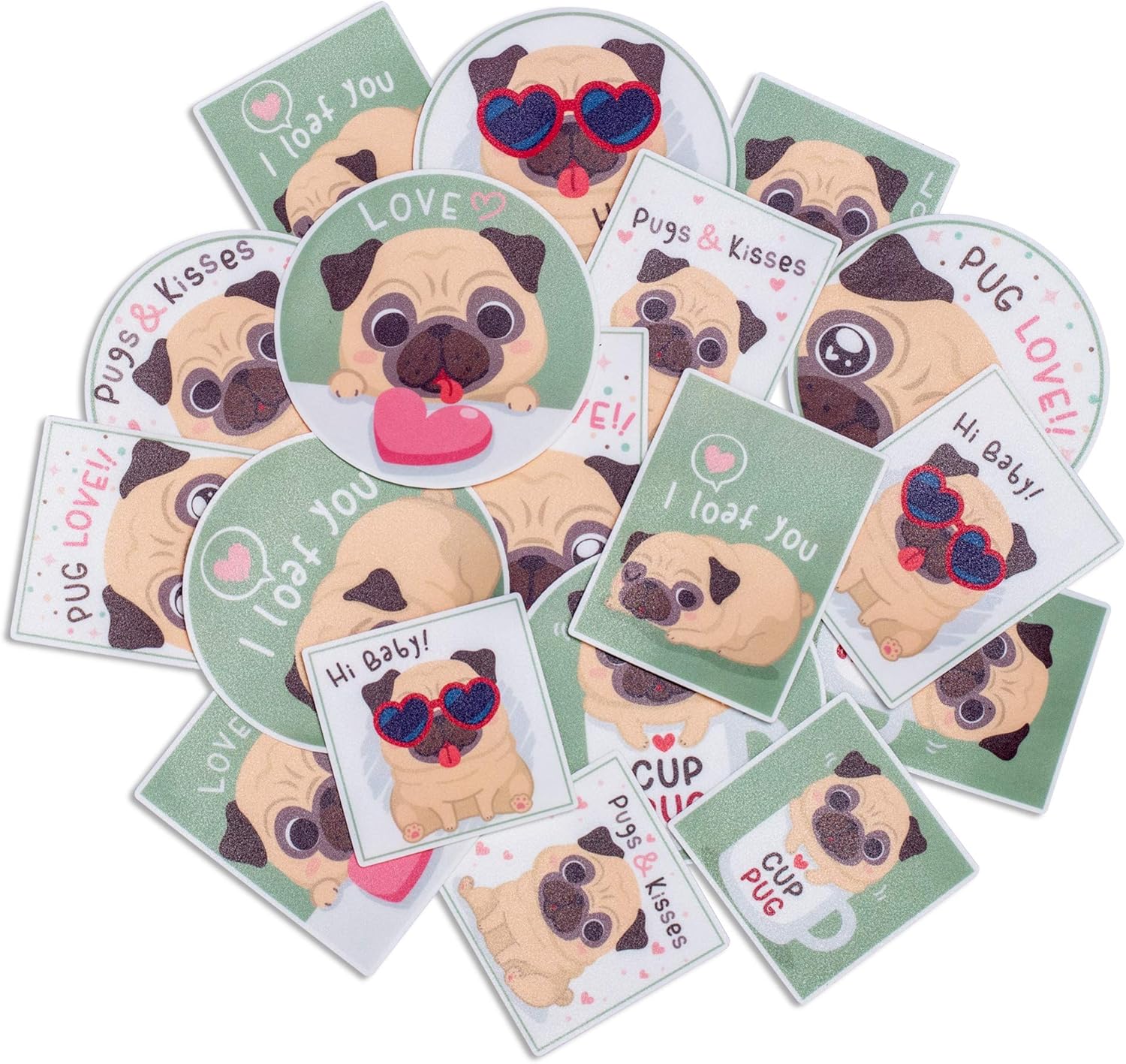 Navy Peony Verspielter Mops Sticker-Set (18er-Pack) – wasserfest ...