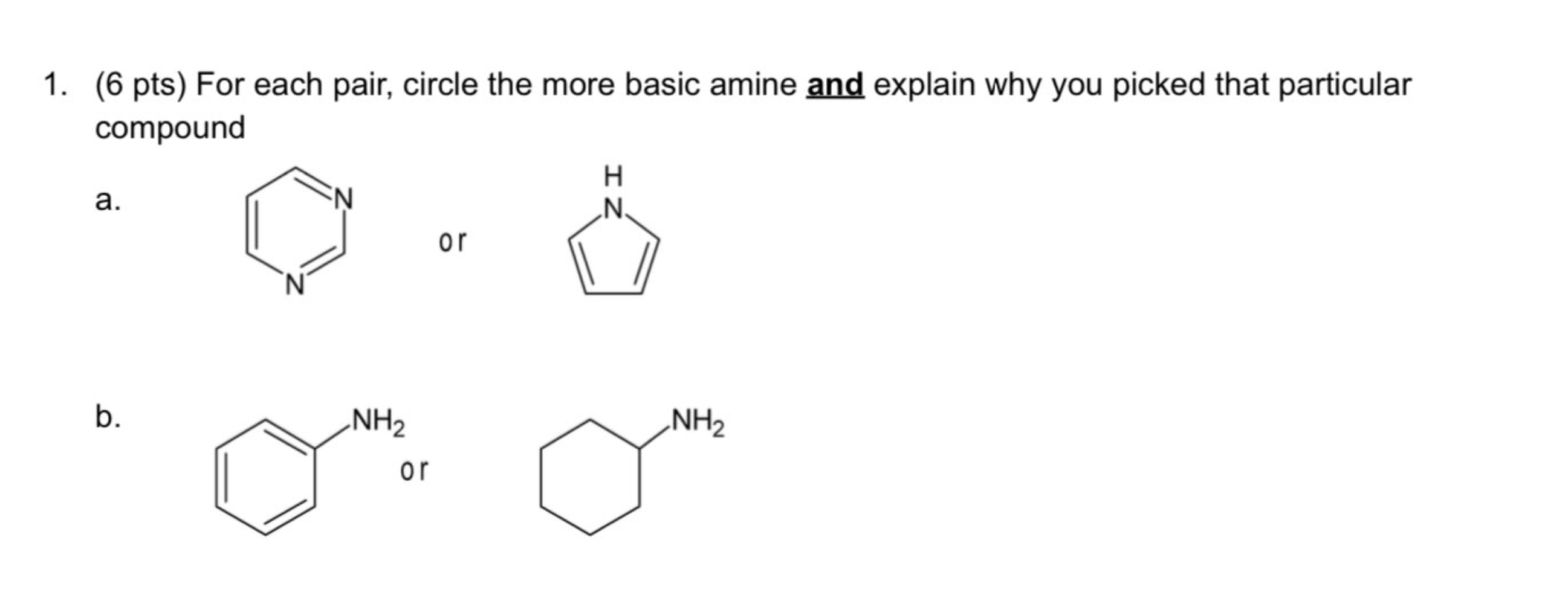 Solved 1. (6 pts) For each pair, circle the more basic amine | Chegg.com