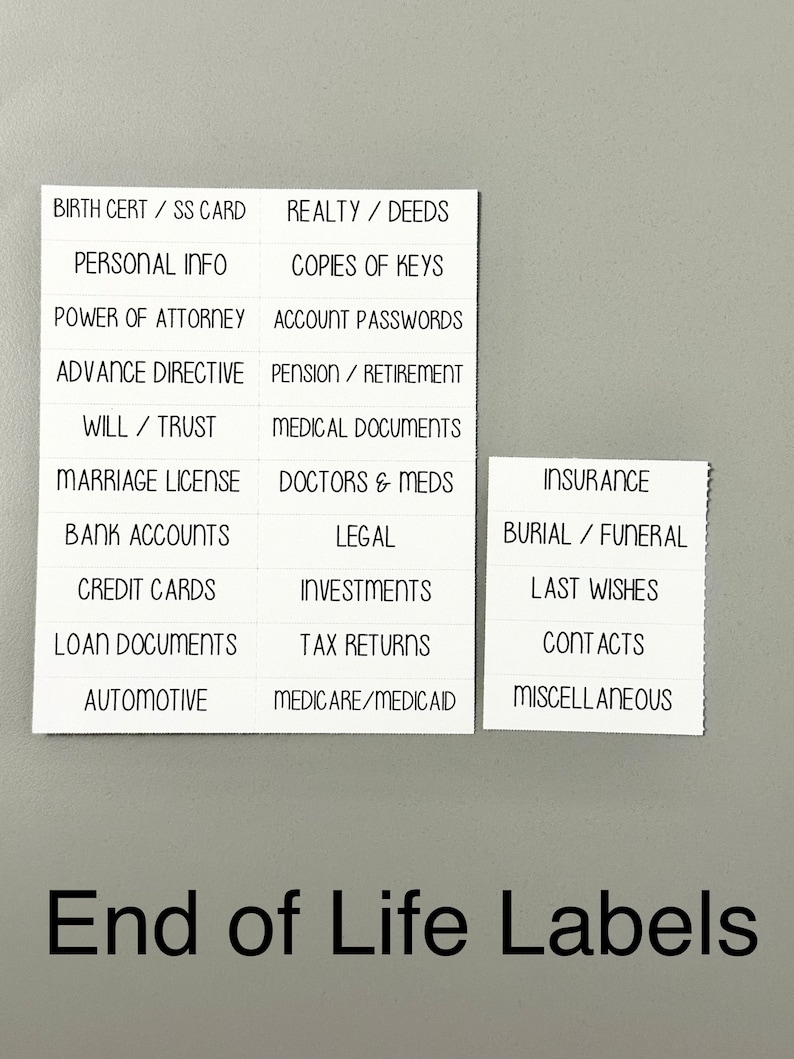End of Life LABELS ONLY Emergency File Bin Labels Planning for Death ...
