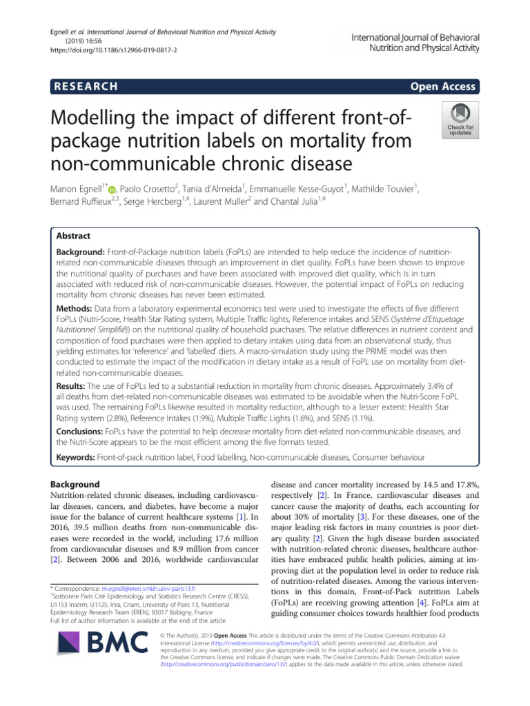 Modelling The Impact of Different Front-Ofpackage Nutrition Labels On ...