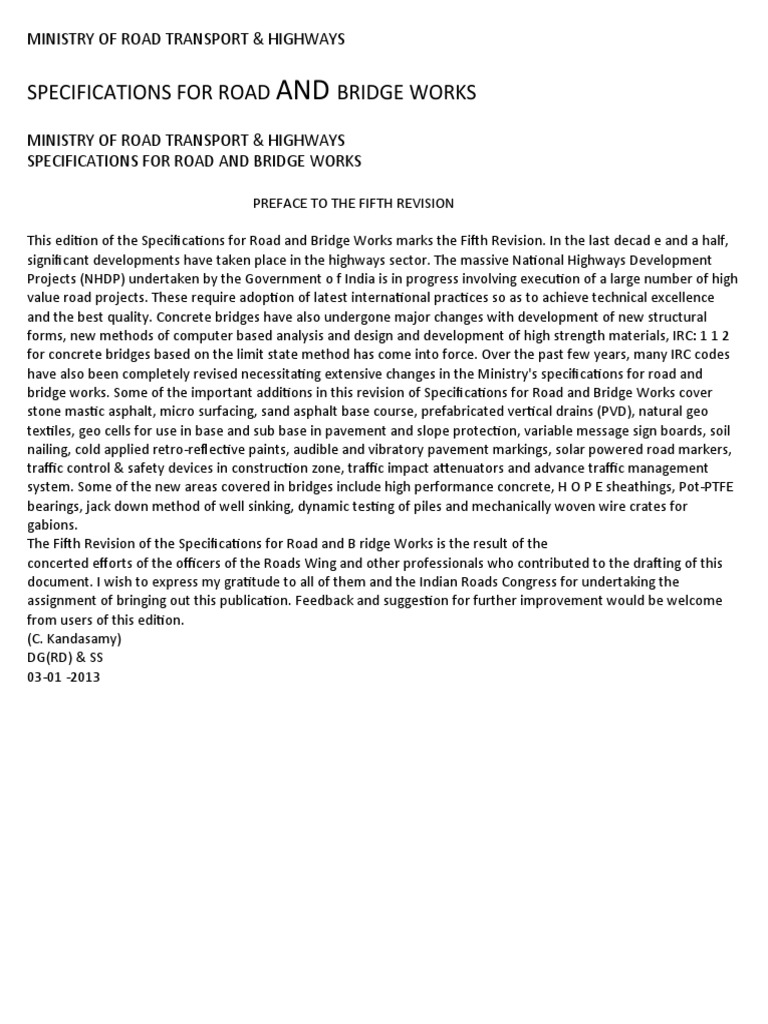 MoRT&H Specifications for Road and Bridge Works | Introduction of ...