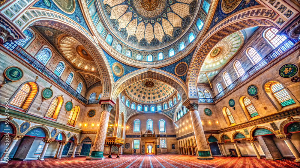 Mosque Interior with Intricate Patterns Mosaics and Ornate Decorations ...