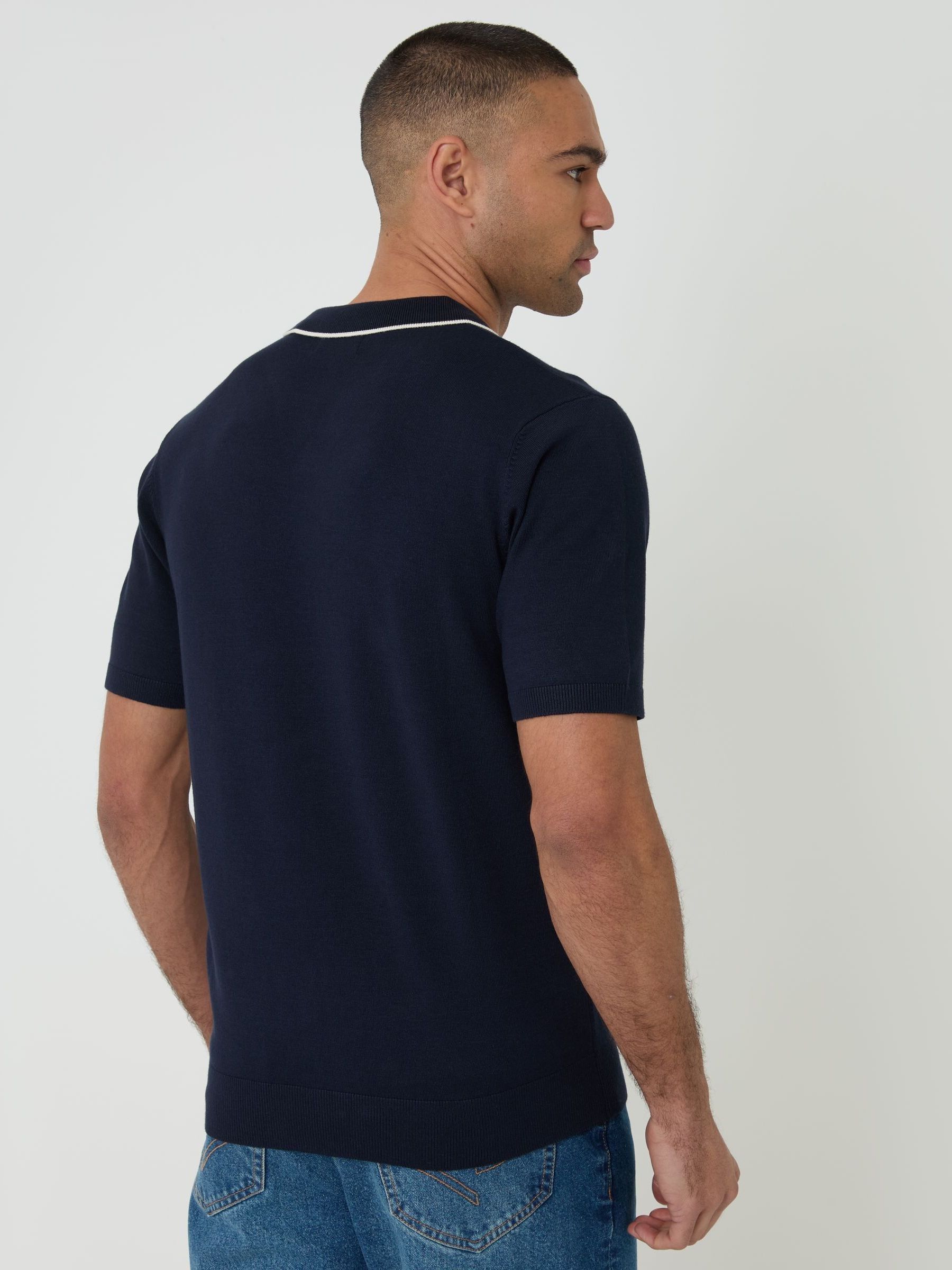 Buy Threadbare Blue Knitted Contrast Tipping Trophy Neck Polo Shirt ...