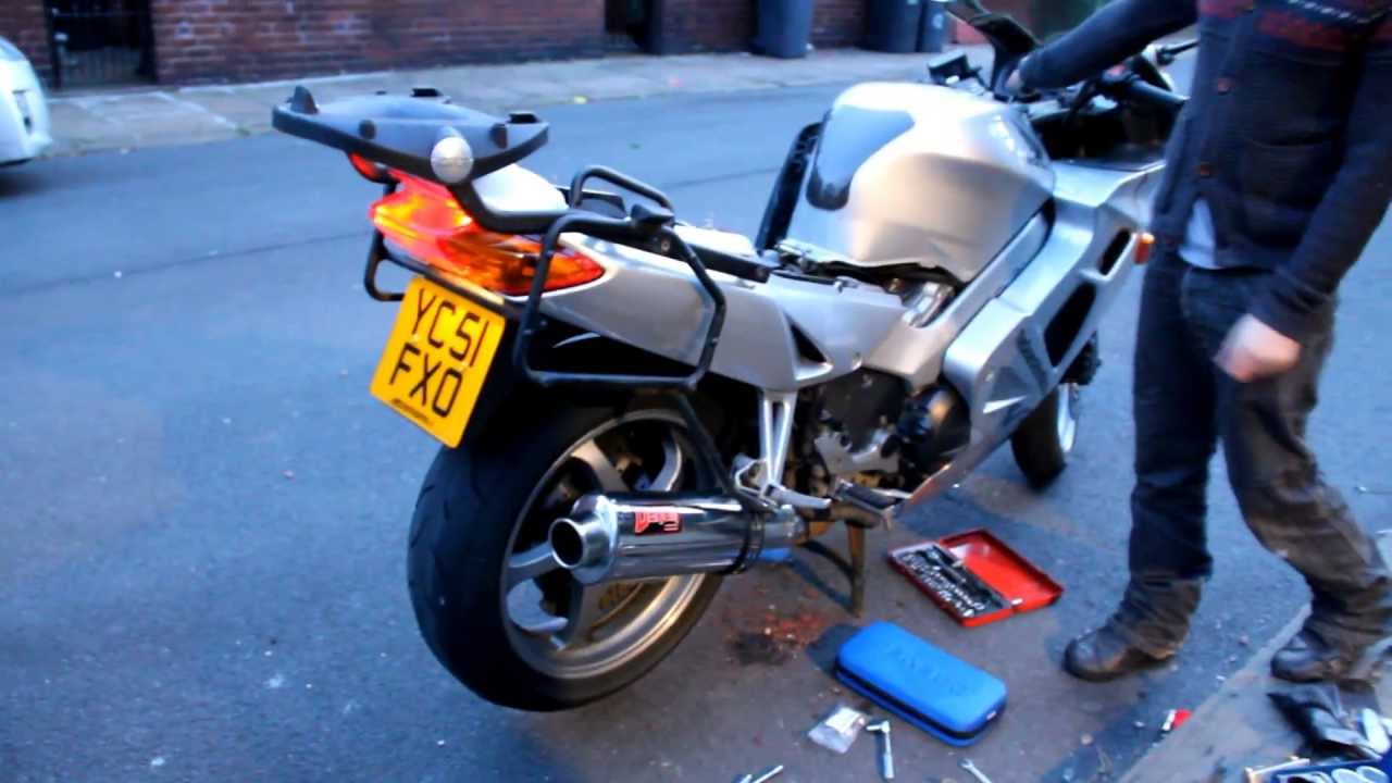 Honda VFR800 Venom Motad Exhaust (No exhaust) - YouTube