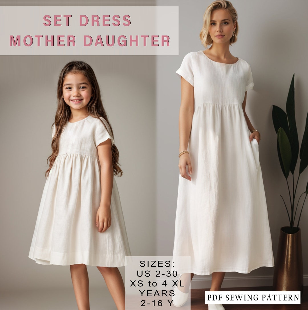 Set Dress Mother Daughter, Linen Short Sleevele Dress Sewing Pattern ...